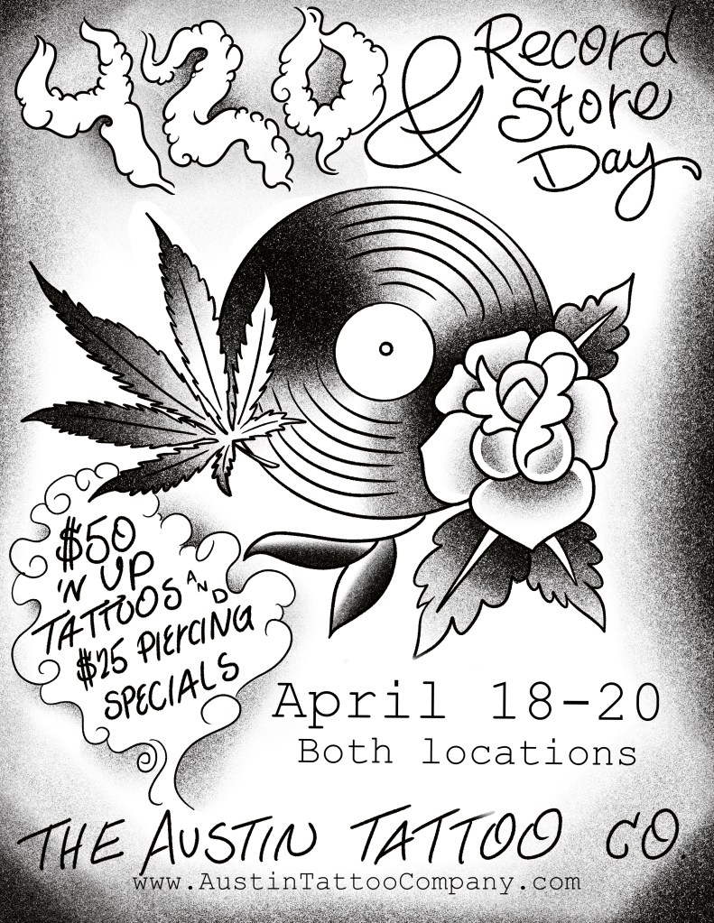 Our Favorite two holidays are happening during the same weekend! Record Store Day and 420!! Join us Saturday, Sunday and Monday for groovy and music themed tattoos!
