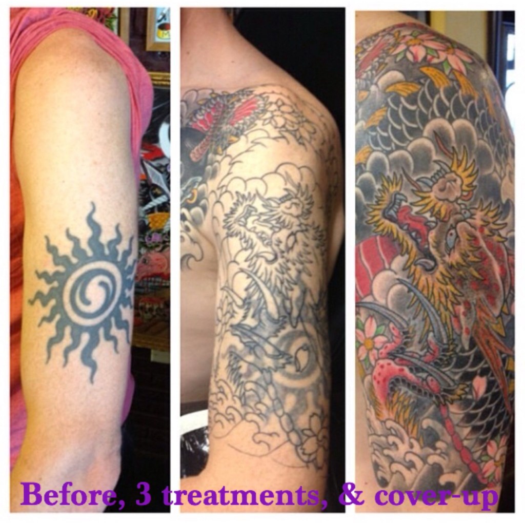 Because the area can continue to lighten even after your final session, it is recommended to wait one year before getting the area covered with a new tattoo.